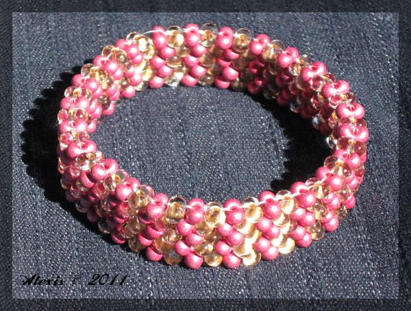 | I couldn't resist those Farfalle beads - but what to do with them? I decided to do a peyote strip 5 beads wide. :) |
