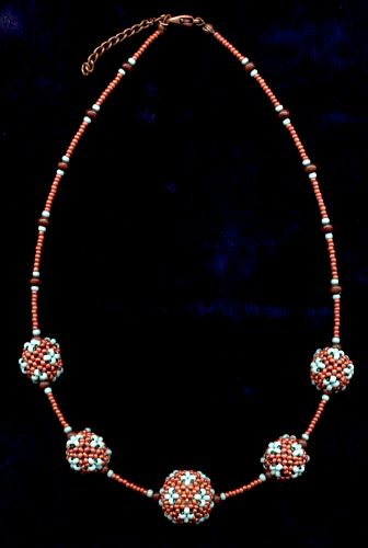 Instructions are at the french forum Histoire de Perles. Beads: 2 mm Rayher pearl 14075208 2,5 mm KNORR chalk mint 6201407 3 mm round wood beads |