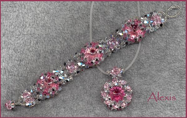 from the ring "Paradise". The closure for the bracelet is my Rosebud bead. Beads: 14 mm Rivolis light rose and rose (pendant) 4 mm Swarovskis light rose and comet argent light 3 mm Swarovskis rose 11/0 clear silverline |