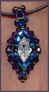 The instructions for the ring are from Pluie de Cristal. I prefer pendants to rings ... Beads: Navette 15x7 crystal Swarovskis 4 mm Montana AB2x, Purple Velvet Facetted beads 4 mm hematite 11/0 seed beads Black AB Rayher 1406201 |