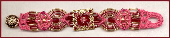 | Inspired mainly by Marie LeSueur. Beads: Delicas 924, 116, 042 Swarovskis 4 mm Siam, Fuchsia, Lt. Rose Swarovskis 3 mm Siam, Rose Seed beads 4,5 mm dark red sl Pracht 9360-05 Round beads 4mm gold 6 mm facetted beads red |