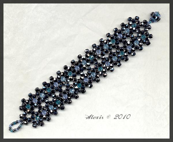 | The instructions are by Arduinna and can be found at Kreativvagyok. Beads: 4 mm facetted beads hematith Euro-crafters 830492 4 mm Swarovskis aquamarine, light sapphire, indicolite 11/0 seed beads hematith Rayher 14 064 23 11/0 seed beads light blue and turquoise nonames |