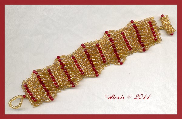 | The instructions are by Shelley Nybakke, from the Beadwork magazine December 2008. You can find them for free at Beadingdaily. Beads: 11/0 yellow AB Rayher 1406106 3 mm round beads nonames |