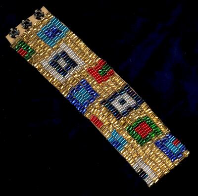 with evencount Peyote and sewn to a piece of thin leather.