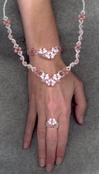 Instructions are from Carinne at the french forum Histoire de Perles. Beads: Swarovskis 6 mm lt. rose Swarovskis 4 mm lt. rose & rose alabaster Round beads 6 mm Rayher 1603990 Round beads 4 mm rose nonames 2,5 mm seed beads Knorr/Prandell 6109004 |