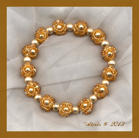 | The instructions are from the book "Stilvolle Schmuckstücke / Lydia Klös" ISBN 978-3-7724-3965-0. Beads: 11/0 nonames in honey clear and pearly yellow 4 mm round beads Knorr 6072 76 0 6 mm round beads Knorr 6073 76 0 |