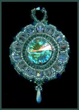 | The instructions are from Kikibuck and can be found at the French forum of the Swiss store La perle rare. The beads: Rivoli 14 mm crystal ab Delicas 79 lined aqua blue ab Delicas 112 sea foam lustre 4 mm facetted beads light blue ab Rayher 4 mm Swarovskis jet AB2x Dagger noname |