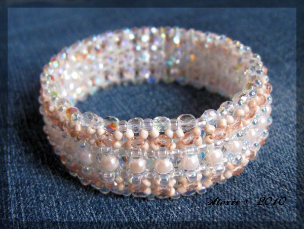 | The instructions are by Perlenspiegel. Beads: 4 mm facetted beads crystal AB 3 mm facetted beads rosé Beadreaming AR70130-3 4 mm round beads rosé Schmuckart 50434 8/0 seed beads crystal AB 11/0 seed beads rosé nonames 15/0 seed beads crystal AB Toho 161 |