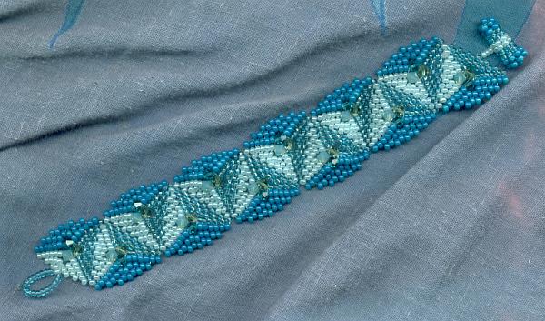 | The instructions are from Thisyearsdozen. I just left out making a base - it works like it is. :) Beads: Swarovskis 4 mm Indicolite, Erinite, Pacific Opal 11/0 turquoise opaque Prandell 5500 471 11/0 turquoise silverlines nonames 11/0 light turquoise pearl nonames |